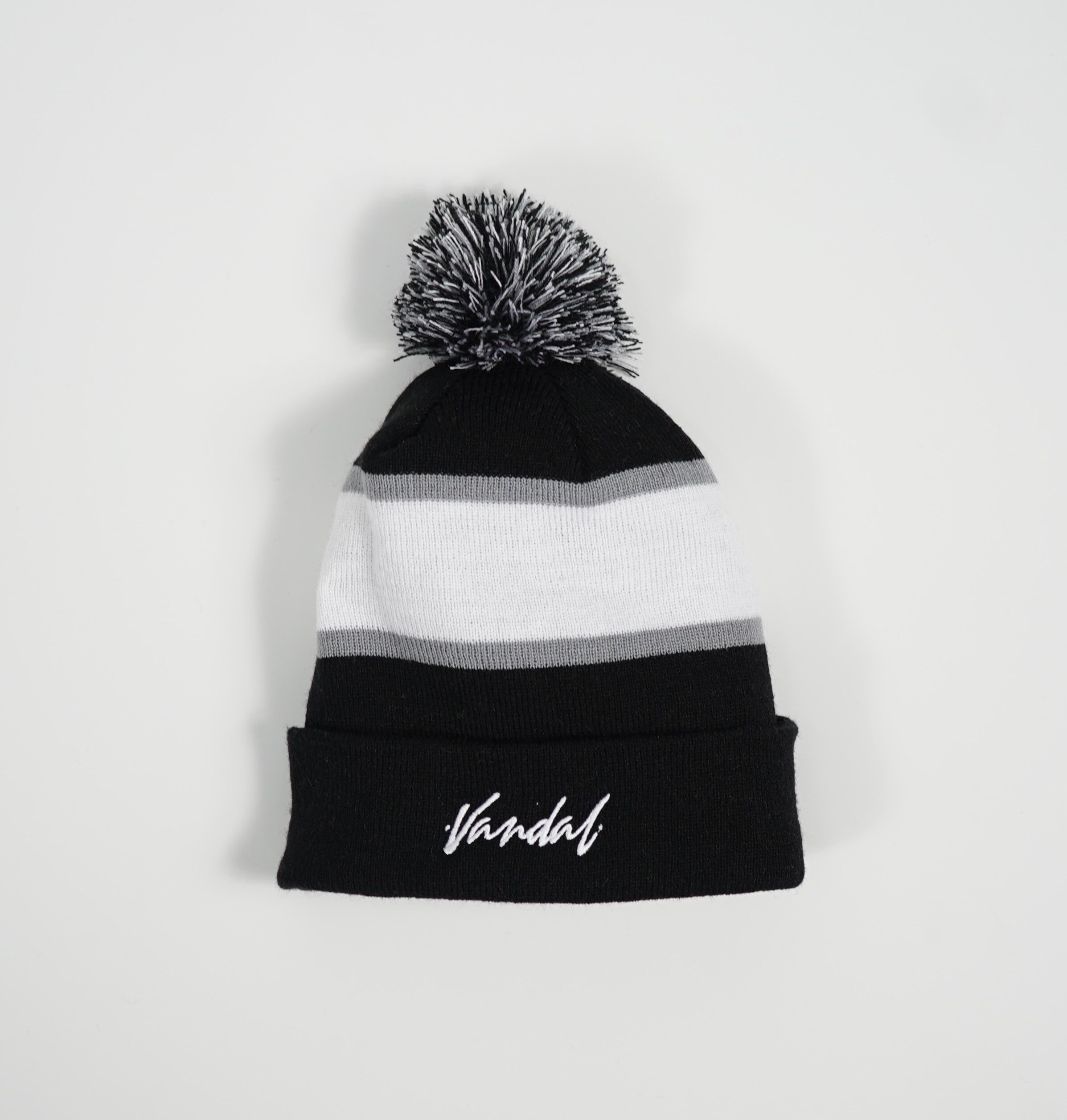 Beanie tricolor con pompón y bordado Vandal Script